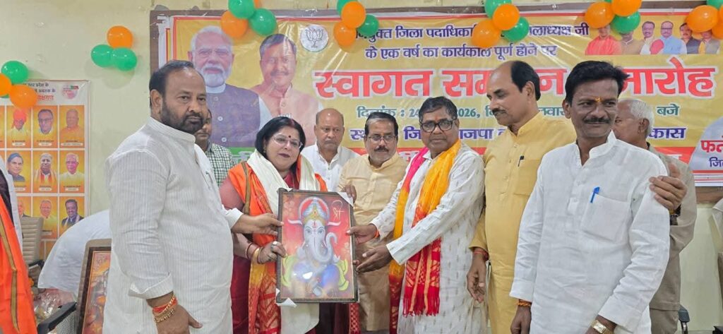 फर्रुखाबाद। (सिटी पत्रिका 24X7): आवास विकास स्थित भाजपा जिला कार्यालय में मंगलवार को जिला अध्यक्ष फतेहचंद वर्मा के एक वर्ष का कार्यकाल पूर्ण होने और नवनियुक्त जिला कार्यकारिणी के अभिनंदन के अवसर पर भव्य कार्यक्रम आयोजित किया गया। कार्यक्रम की अध्यक्षता जिला अध्यक्ष फतेहचंद वर्मा ने की, जिसमें संगठन को मजबूत बनाने और आगामी रणनीतियों पर विस्तार से चर्चा हुई।